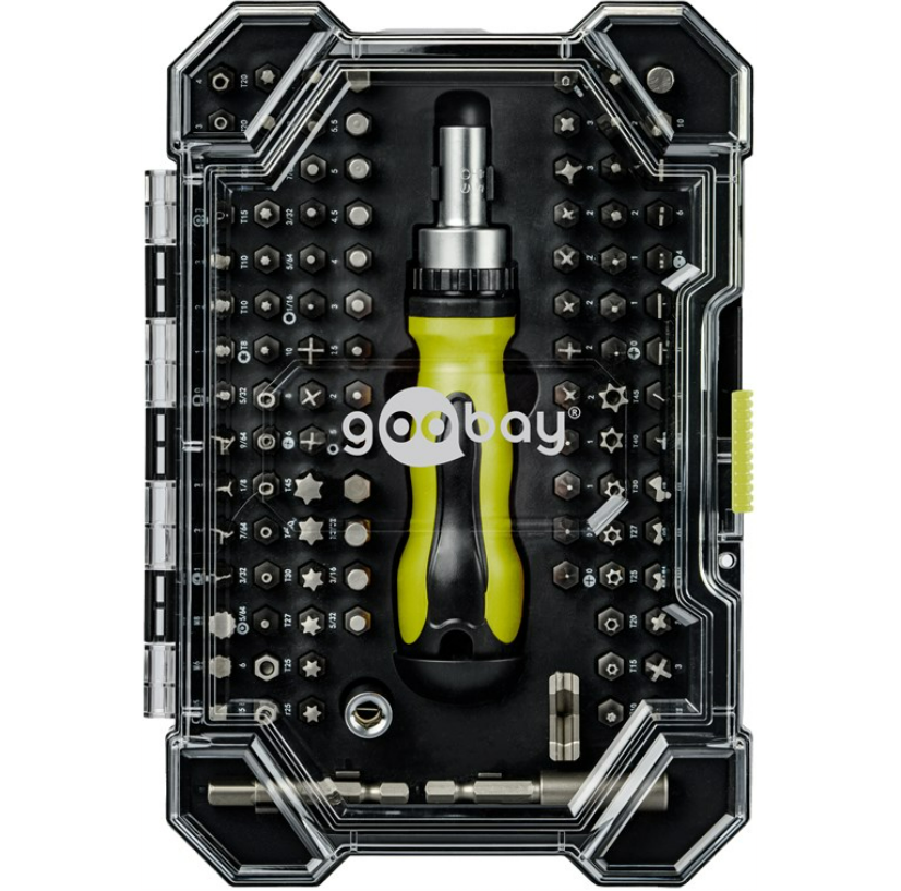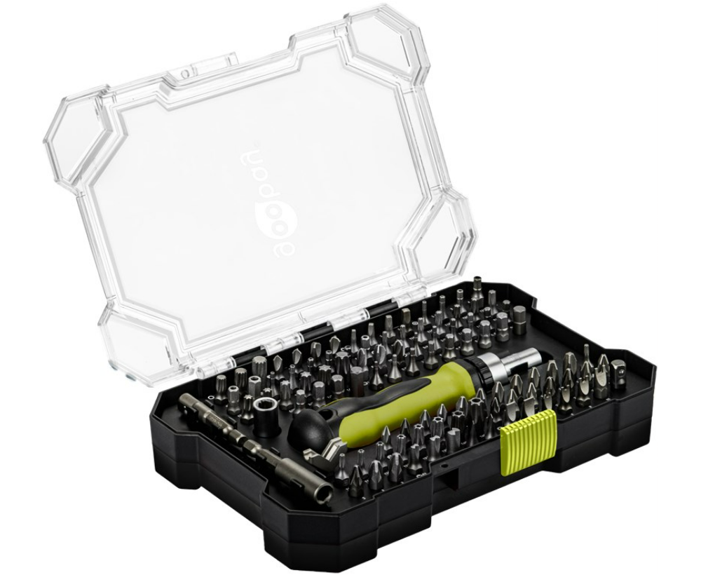 - Inkl. 99 Bits aus stoßfestem S2-Stahl: 4x Flachschlitz, 21x Kreuzschlitz (PH, PZ), 22x Innensechsrund (T, TH), 4x Tri-Wing, 4x Vierkant, 31x Hexagon (H, Hex Pin), 3x 12-Punkt (M), 3x Clutch (C ), 4x Spanner (U), 3x Torque