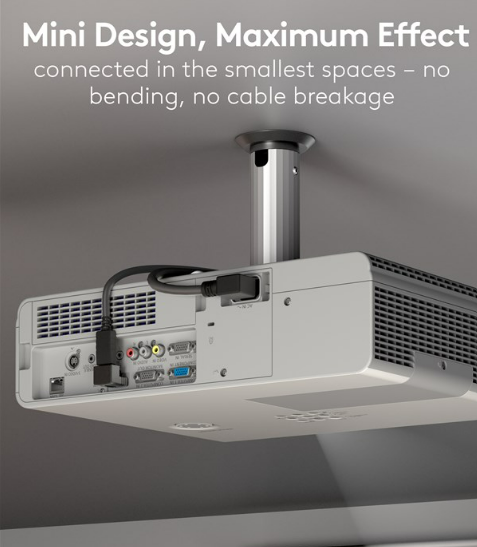 • Der 90°-Winkel des Steckers erlaubt einen abgewinkelten Anschluss: Perfekt auf kleinstem Raum, z. B. an rückwärtigen Gerätebuchsen