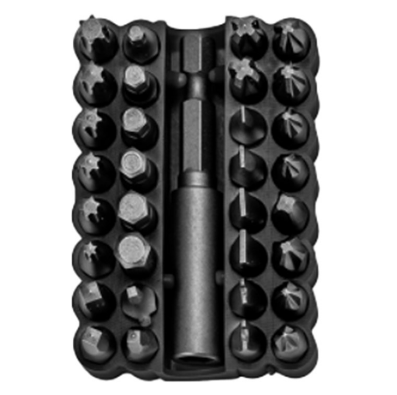 - Inkl. 9x Stecknüsse und 32 Bits aus stoßfestem S2-Stahl: 8x Flachschlitz, 12x Kreuzschlitz (PH, PZ), 7x Innensechsrund (T), 5x Sechskant (H)