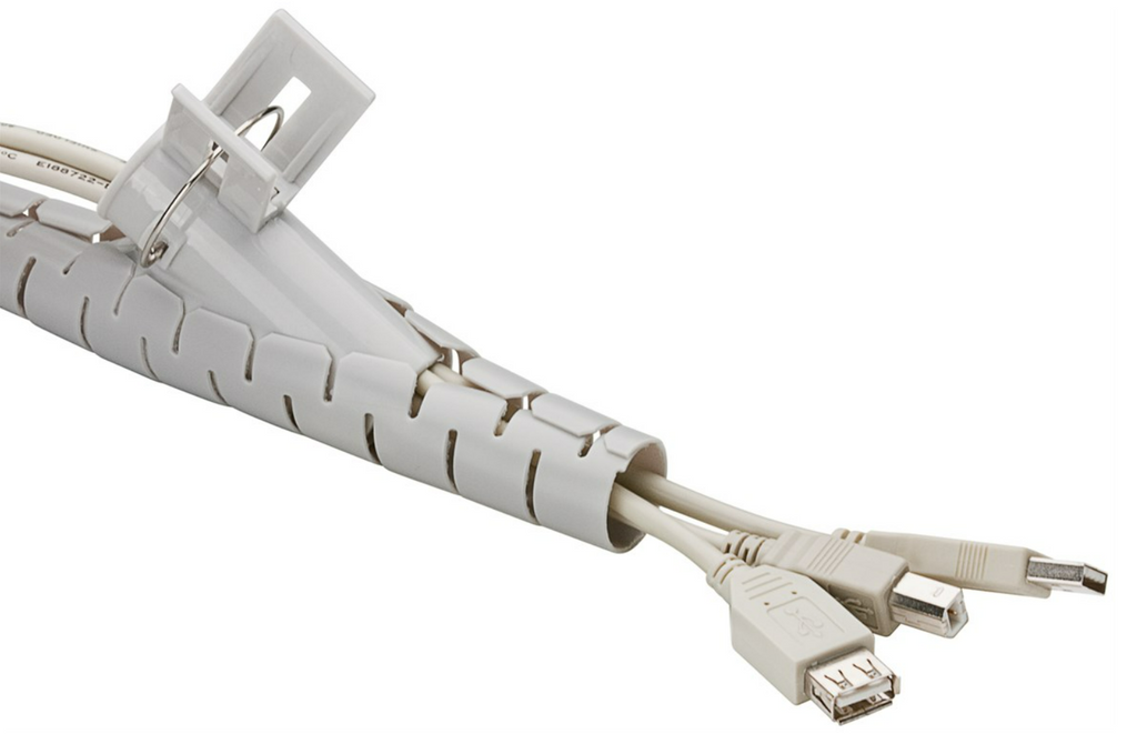 Kabelspirale verhindert Unordnung auf dem Fußboden oder Schreibtisch durch verknotete Kabel oder Beschädigung durch Haustiere.