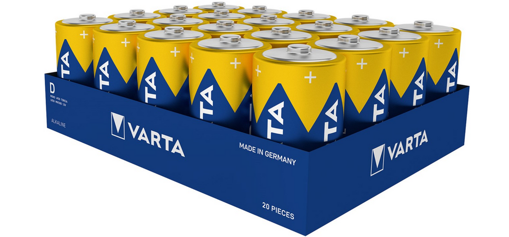 - Unbenutzte und verpackte VARTA Batterien LR20 bleiben bis zu 10 Jahre lang im frischen, geladenen Zustand. Lagerfähigkeit 10 Jahre.